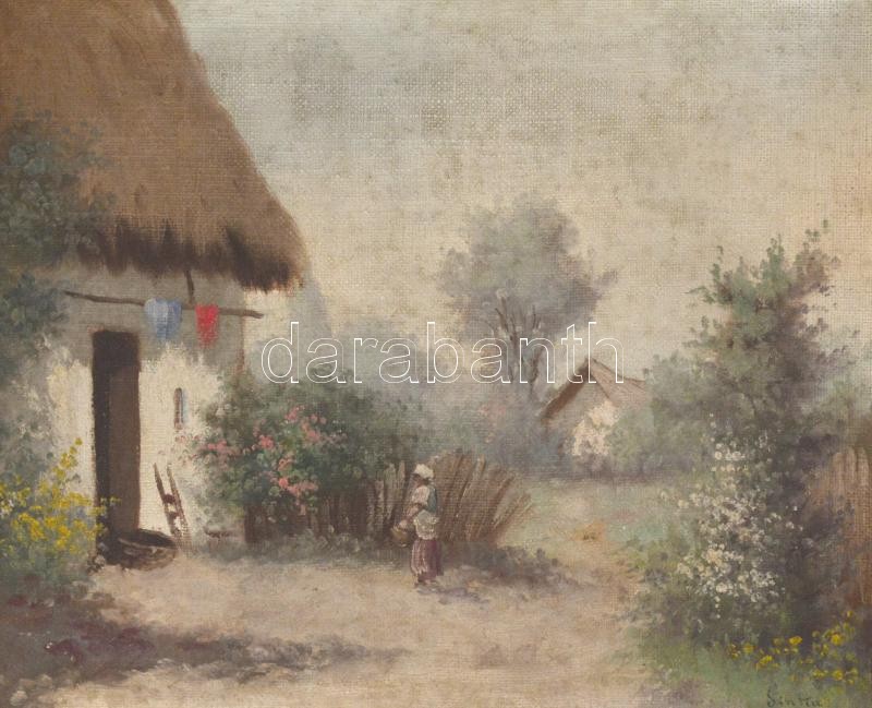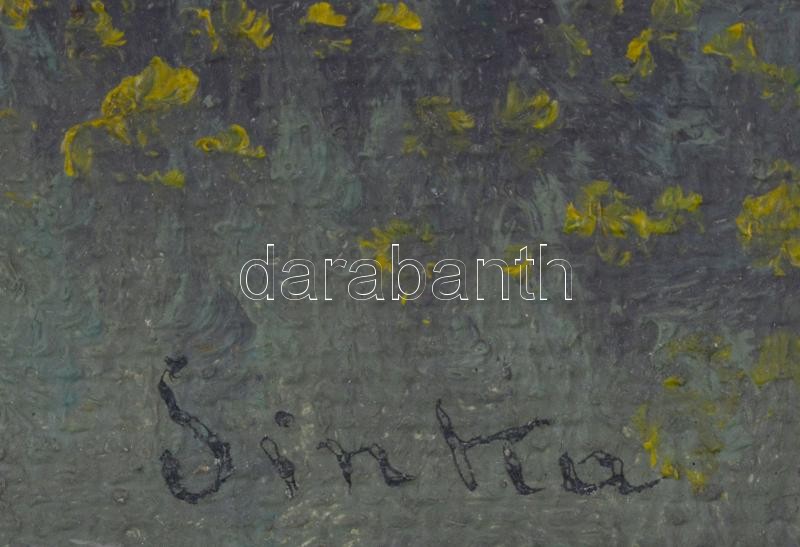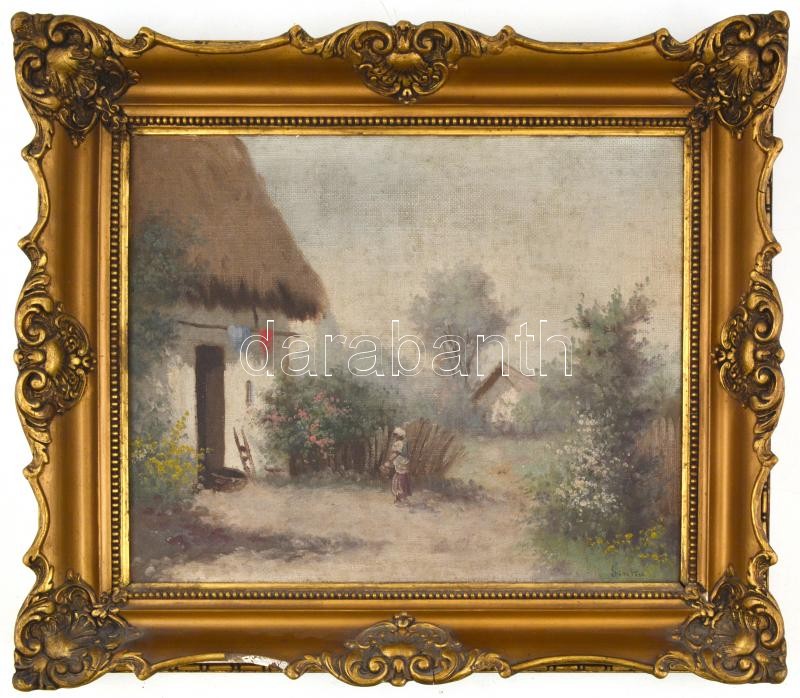 Beschreibung: Sinka jelzéssel: Virágod udvar. Olaj, vászon, jelzett, díszes fa keretben, 39×50 cm