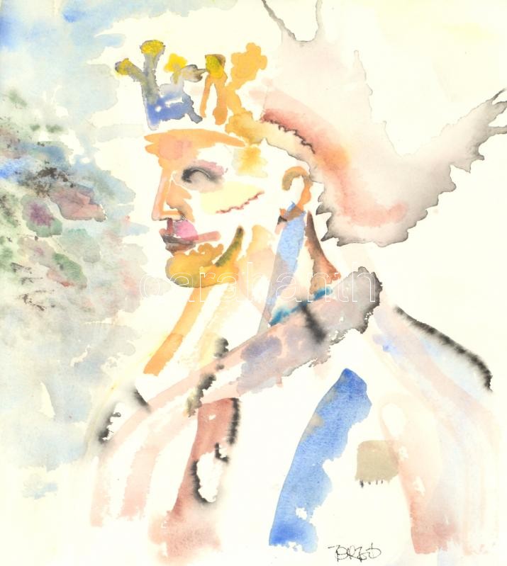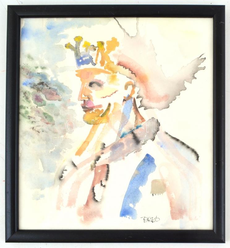 Beschreibung: Torbó Gyula (?1940-?): Királyfi. Akvarell, fa, díszes fa keretben, 26,5x24 cm