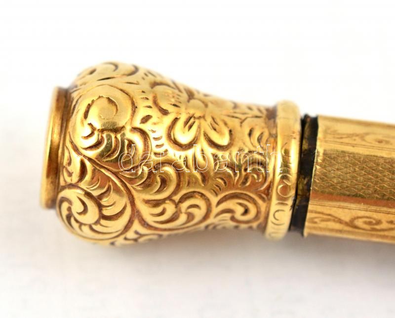 Beschreibung: Arany (Au) 14 K arany töltőceruza, jelzett, működő állapotban, bruttó: 18,3 g, h: 12 cm.