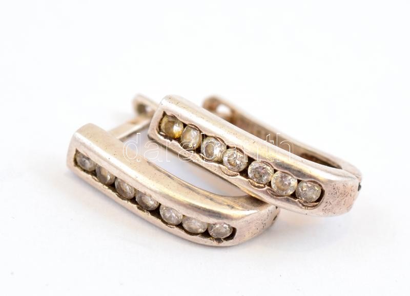 Ezüst(Ag) fülbevaló pár, fehér kövekkel, jelzett, h: 1,5 cm, bruttó: 3... https://www.darabanth.com/de/374-Fernauktion/374.0/Juwelen/Juwelen~1000024/EzustAg-fulbevalo-par-feher-kovekkel-jelzett-h-1-5-cm-brutto-3-14-g~II2189920