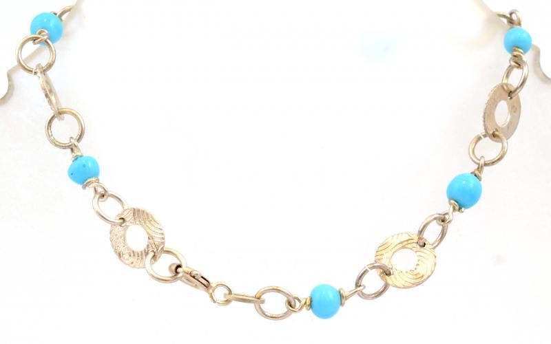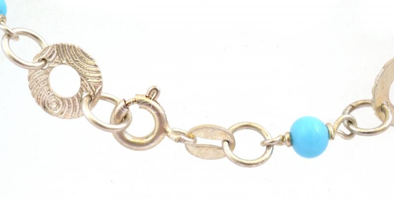 Beschreibung: Ezüst(Ag) karkötő, kék gyöngyökkel, jelzett, h: 18 cm, bruttó: 4 g