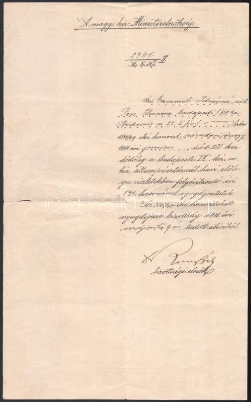 1911 1848-as honvéd százados özvegyének nyugdíjazásáról döntő miniszte... https://www.darabanth.com/de/374-Fernauktion/374.0/Kunst-Dokumente-andere-Sammelgebiete/Dokument~2000106/1911-1848-as-honved-szazados-ozvegyenek-nyugdijazasarol-donto-miniszterelnoksegi-okirat~II2190685