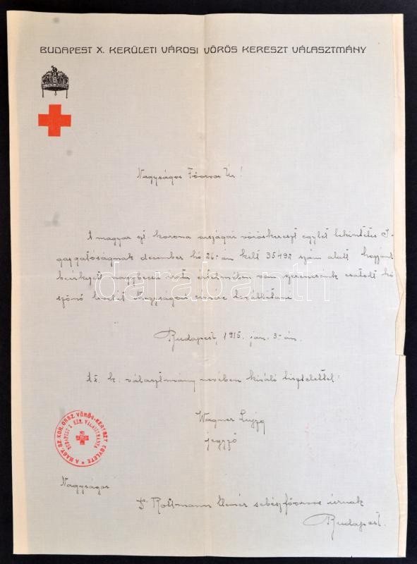 1915 Budapest X. Kerületi Városi Vörös Kereszt Választmány fejléces le... https://www.darabanth.com/de/374-Fernauktion/374.0/Kunst-Dokumente-andere-Sammelgebiete/Dokument~2000106/1915-Budapest-X-Keruleti-Varosi-Voros-Kereszt-Valasztmany-fejleces-level-Dr-Rottmann-ElemC3~II2166118