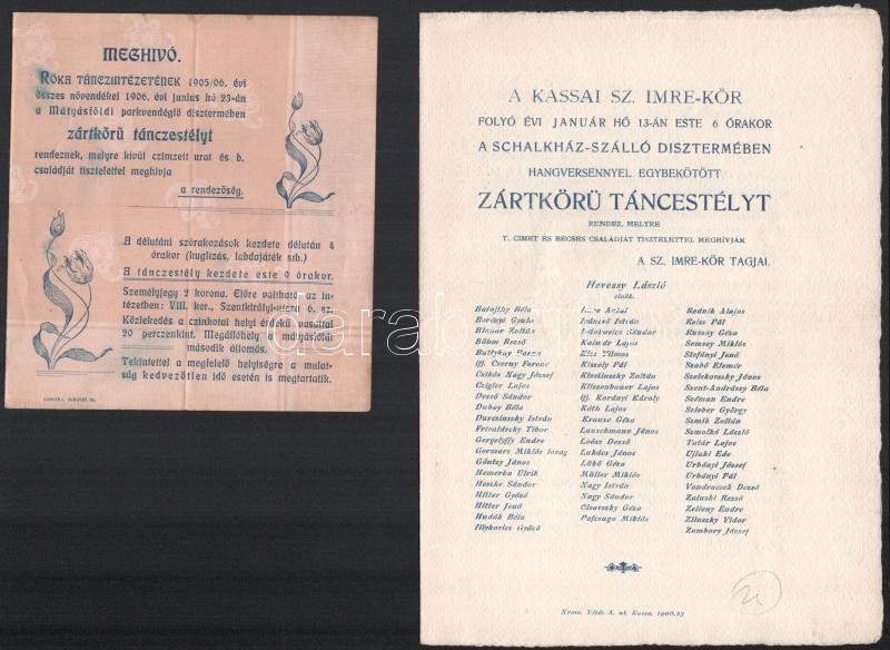 Beschreibung: 1906-1941 4 db báli meghívó, közte Magyar Gör. Kat. Egyetemi És Főiskolai Hallgatók Vasvári Pál Körének estélye, Kassai Sz. Imre-Kör táncestélye