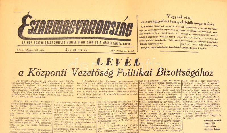 1956 Az Északmagyarország c. napilap száma, benne a forradalmi számok ... https://www.darabanth.com/de/374-Fernauktion/374.0/Kunst-Dokumente-andere-Sammelgebiete/Drucksachen~30/1956-Az-Eszakmagyarorszag-c-napilap-szama-benne-a-forradalmi-szamok-is-osszesen-29-db-szorv~II2189282