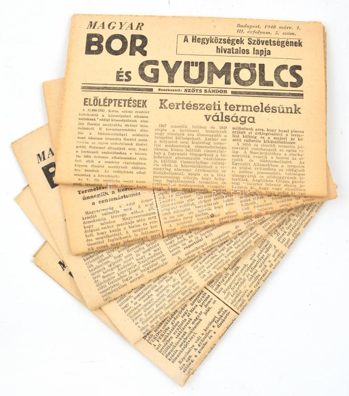 1968 A Magyar Bor és Gyümölcs című újság 6 db száma https://www.darabanth.com/de/374-Fernauktion/374.0/Kunst-Dokumente-andere-Sammelgebiete/Drucksachen~30/1968-A-Magyar-Bor-es-Gyumolcs-cimu-ujsag-6-db-szama~II2185758