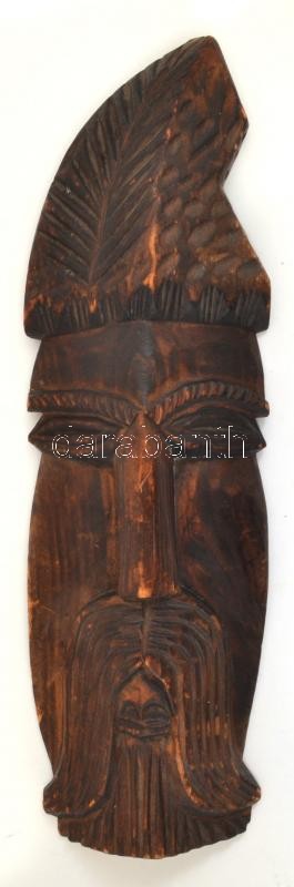 Beschreibung: Arc, faragott fa fali dísz, kopásnyomokkal, 41×12 cm
