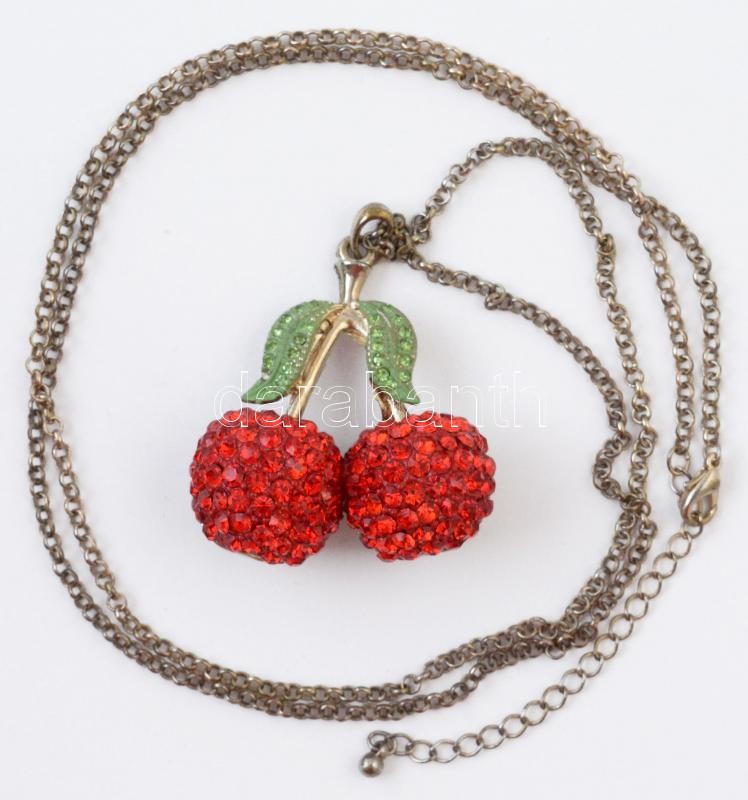 Bizsu nyaklánc strasszos cseresznyés medállal, egy kő hiányzik a level... https://www.darabanth.com/de/374-Fernauktion/374.0/Kunst-Dokumente-andere-Sammelgebiete/Flohmarkt~12/Bizsu-nyaklanc-strasszos-cseresznyes-medallal-egy-ko-hianyzik-a-levelerol-h-54-5-cm~II2151034