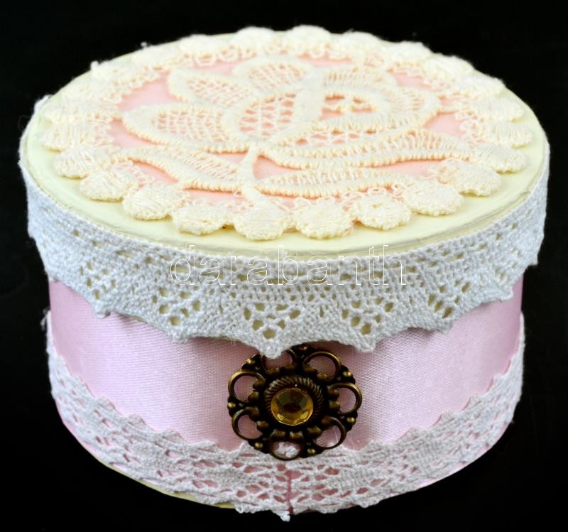 Csipkével és bizsuval díszített karton ékszertartó doboz, jó állapotba... https://www.darabanth.com/de/374-Fernauktion/374.0/Kunst-Dokumente-andere-Sammelgebiete/Flohmarkt~12/Csipkevel-es-bizsuval-diszitett-karton-ekszertarto-doboz-jo-allapotban-m-6-5-cm-d-10-5-~II2119779