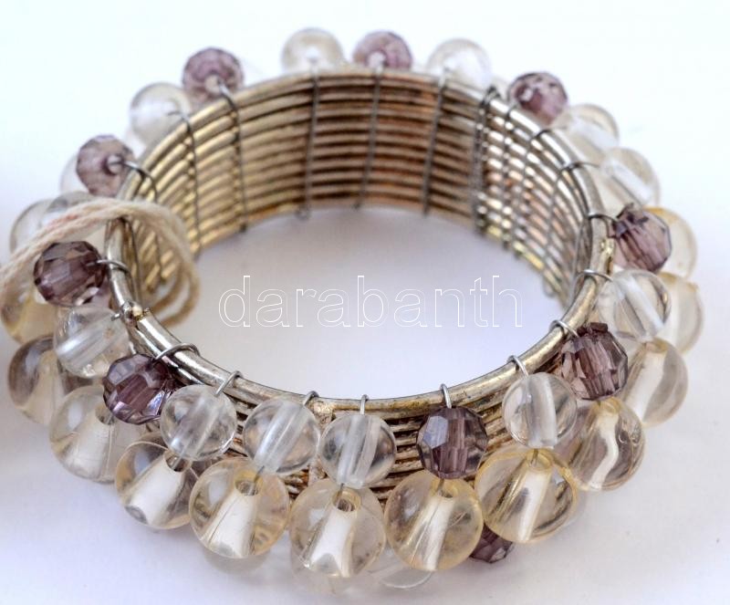 Beschreibung: Fém szalvétagyűrűk strasszokkal, gyöngyökkel, 4 db, 1-1 pár, az egyikről hiányzik egy strassz d: 4 cm
