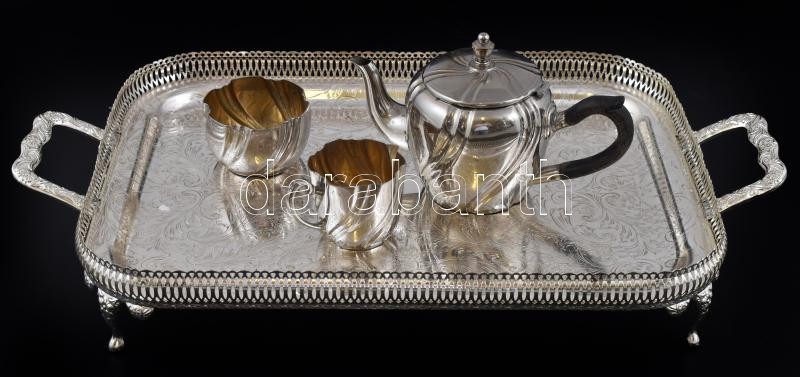 Beschreibung: Fém tálca, 41x30 cm + egy személyes, hiányos mokkás készlet