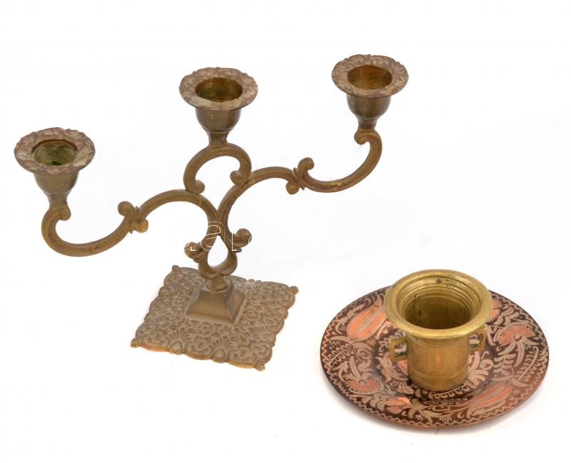 Össz. 3 db réz tárgy: Gyertyatartó, háromágú, kissé kopott, m. 15 cm, ... https://www.darabanth.com/de/374-Fernauktion/374.0/Kunst-Dokumente-andere-Sammelgebiete/Flohmarkt~12/Ossz-3-db-rez-targy-Gyertyatarto-haromagu-kisse-kopott-m-15-cm-h-21-cm-plus-Mozsar-m~II2184208