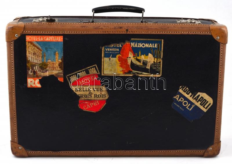 Régi kis bőrönd, címkékkel, egyik oldalon a varrás sérült, 48×30×14 cm https://www.darabanth.com/de/374-Fernauktion/374.0/Kunst-Dokumente-andere-Sammelgebiete/Flohmarkt~12/Regi-kis-borond-cimkekkel-egyik-oldalon-a-varras-serult-48C39730C39714-cm~II2187300