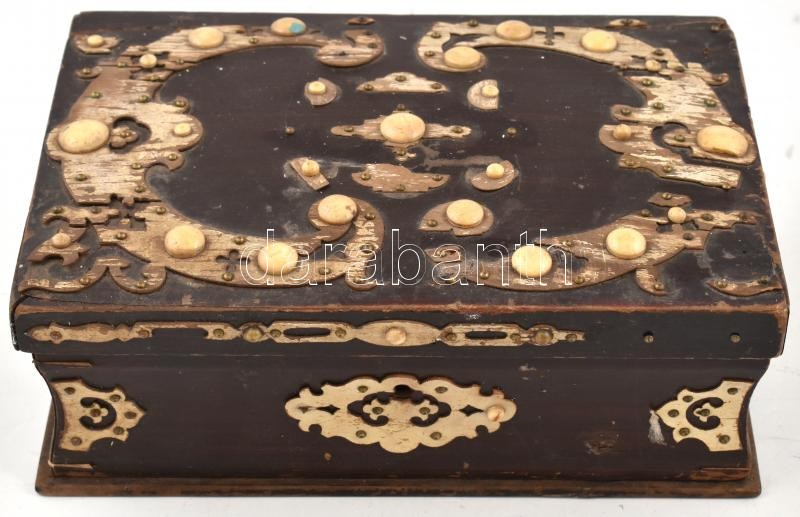 Vegyes bizsu tétel, 13 db, közte 4 db nyaklánc, benne ásvány nyaklánc is, 1 karkötő, 4 db medál, az egyik sérült, 2 pár fülbevaló, 2 tű sérült fadobozban.