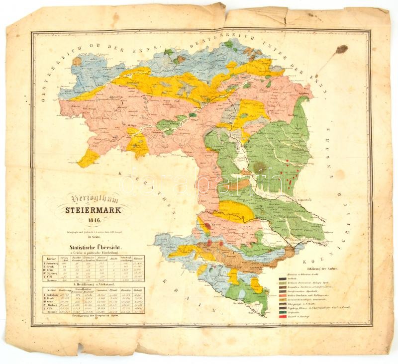 1846 Stájerország kőnyomatú térképe beszakadásokkal. / Map of Steierma... https://www.darabanth.com/de/374-Fernauktion/374.0/Kunst-Dokumente-andere-Sammelgebiete/Landkarten~28/1846-Stajerorszag-konyomatu-terkepe-beszakadasokkal-Map-of-Steiermark-with-tears-42x38-cm~II2190367