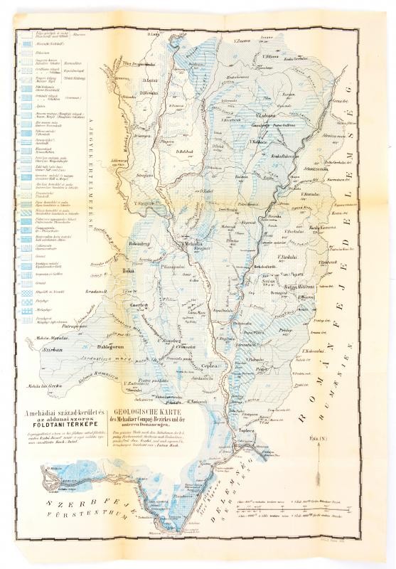 1872 A Mehádiai század-kerület és az aldunai szoros földtani térképe. Német és magyar nyelven. Összeállította: Koch Antal. Rohn A., Pest. Hajtott, 60x42,5 cm