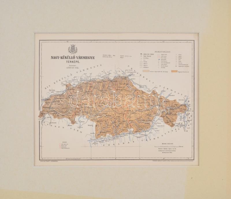 1895 Nagy-Küküllő vármegye térképe, terv. Gönczy Pál, Pallas Nagy Lexikona, 1:465000, Bp., Posner Károly Lajos és fia, paszpartuban, hajtásnyommal, lap alján apró szakadással, 22,5×28 cm / 1896, map of county Komitat Groß-Kokelburg; Comitatul Târnava-Mare, now Romania, in passepartout, with onevery small tear on the edge