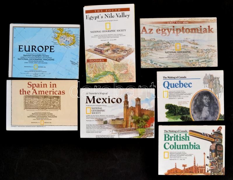Beschreibung: 1991-2003 7 db National Geographic térkép (Quebec, Spain in the Americas, British Columbia, Europe, Mexico, stb.)