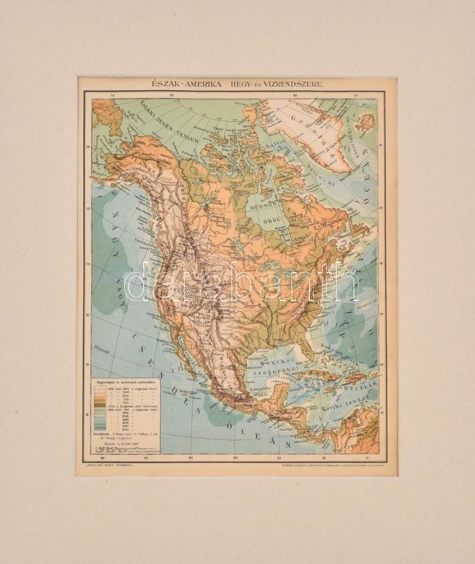 cca 1894 Észak-Amerika hegy- és vízrendszere, térkép, Pallas Nagy Lexikona, 1:35000000, Bp., Posner Károly Lajos és fia, paszpartuban, hajtásnyommal, 28×22,5 cm