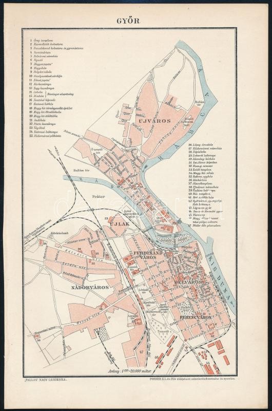 cca 1900 Győr városának térképe, 1:20.000, Pallas Nagy Lexikona, Bp., ... https://www.darabanth.com/de/374-Fernauktion/374.0/Kunst-Dokumente-andere-Sammelgebiete/Landkarten~28/cca-1900-Gyor-varosanak-terkepe-120000-Pallas-Nagy-Lexikona-Bp-Posner-Karoly-Lajos-es-~II2169100