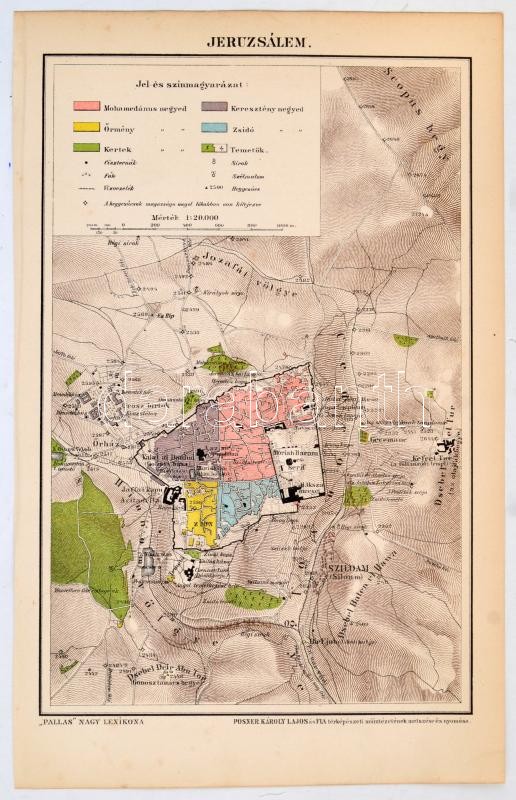 cca 1900 Palesztina térképe, 1:1,200.000, Pallas Nagy Lexikona, kiadja: Posner Károly és Fia, 29,5x24 cm + cca 1900 Jeruzsálem, 1:20.000, Pallas Nagy Lexikona, kiadja: Posner Károly és Fia, 24x15 cm