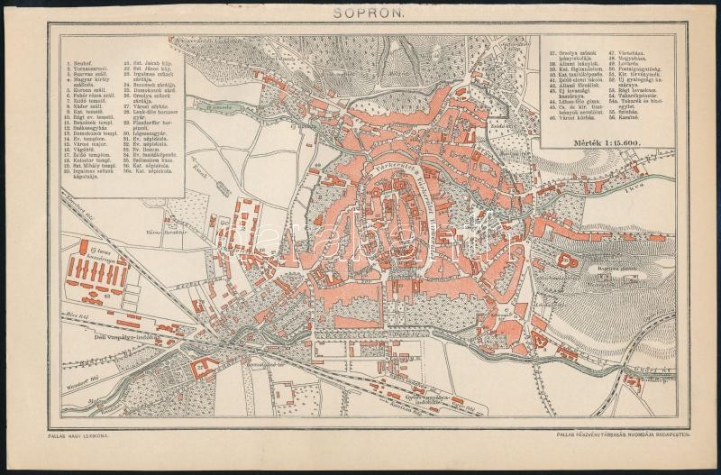 cca 1900 Sopron városának térképe, 1:15.600, Pallas Nagy Lexikona, Bp.... https://www.darabanth.com/de/374-Fernauktion/374.0/Kunst-Dokumente-andere-Sammelgebiete/Landkarten~28/cca-1900-Sopron-varosanak-terkepe-115600-Pallas-Nagy-Lexikona-Bp-Pallas-Rt-16x24-cm~II2169164