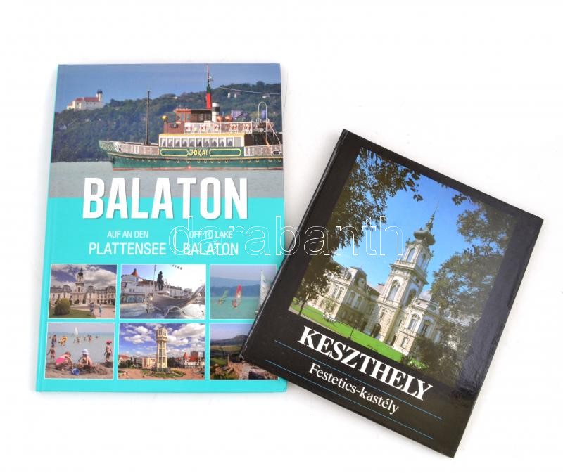 Nemere István: Balaton: Auf an den Plattensee. Off to lake Balaton. Kisújszállás, 1998, Szalay. Magyar, angol és német nyelven. Kiadó kartonált papírkötés.+Dr. Bérczi Loránt-Bérczi Gábor: Keszthely. Festetics-kastély. Koppány Tibor bevezetőjével. Bp., 1990., MTI. Magyar, angol és német nyelven. Kiadói kartonált appírkötés,
