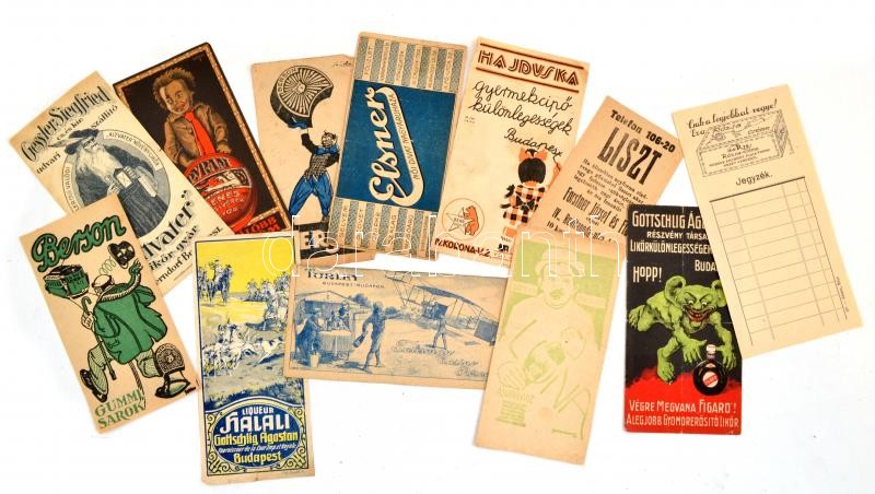 12 db számolócédula: Elsner, Altvater, Gottsclig, Törley, stb https://www.darabanth.com/de/374-Fernauktion/374.0/Kunst-Dokumente-andere-Sammelgebiete/Werbungen~22/12-db-szamolocedula-Elsner-Altvater-Gottsclig-Torley-stb~II2185015