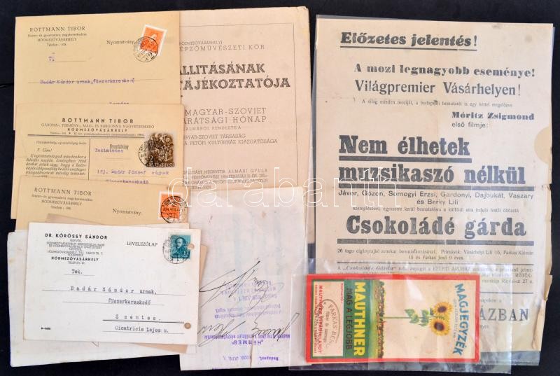 Beschreibung: cca 1920-54 össz. 11 db hódmezővásárhelyi reklám, váltó és nyomtatvány tétel, papír, részben szakadással