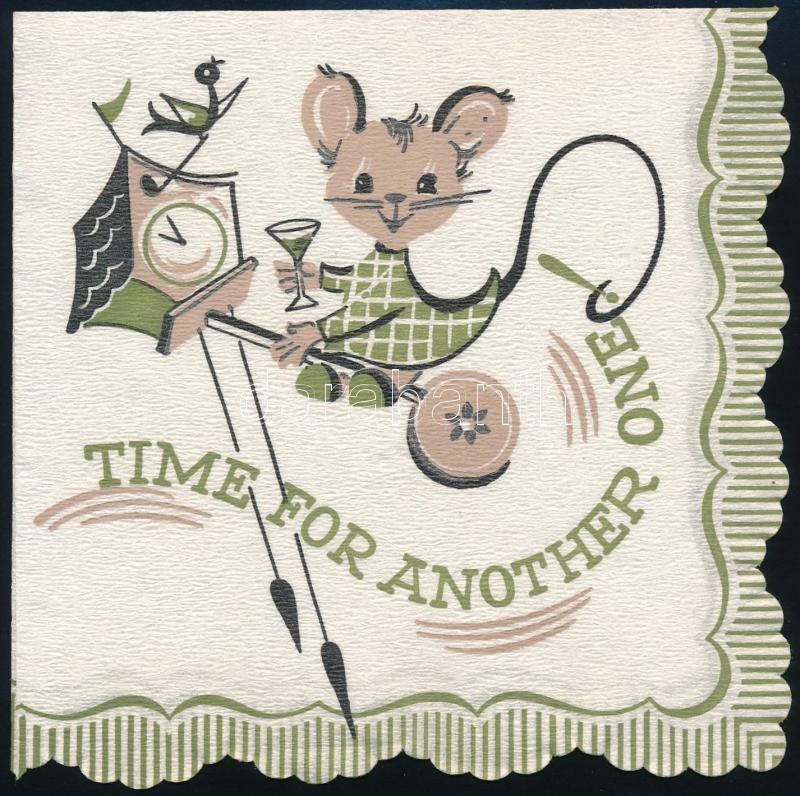 Beschreibung: cca 1950-1960 "Time for another one!" feliratú szalvéta, 12×12 cm