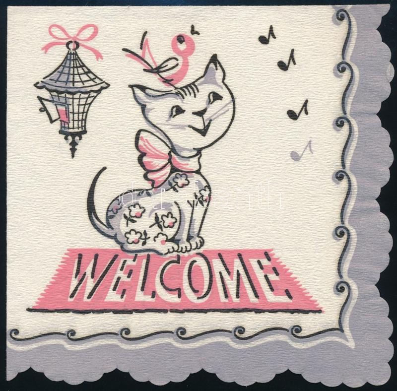 cca 1950-1960 "Welcome" feliratú szalvéta, 12×12 cm https://www.darabanth.com/de/374-Fernauktion/374.0/Kunst-Dokumente-andere-Sammelgebiete/Werbungen~22/cca-1950-1960-Welcome-feliratu-szalveta-12C39712-cm~II2190124