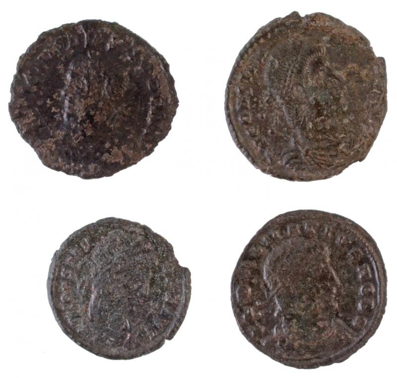 Római Birodalom 4db-os follis tétel a IV. századból (Constans, II. Constantius, Crispus, Delmatius) T:2,2- Roman Empire 4pcs of follis coins from the 4th Century (Constans, II. Constantius, Crispus, Delmatius) C:XF,VF