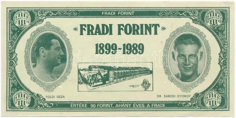 1989. 90Ft névértékű "Fradi Forint" Nyilasi, Albert, Toldi, ... https://www.darabanth.com/de/374-Fernauktion/374.0/Numismatik/Notgeld-aus-Papier-und-Metall~1500006/1989-90Ft-neverteku-Fradi-Forint-Nyilasi-Albert-Toldi-Sarosi-fenykepevel-TI-~II2186209