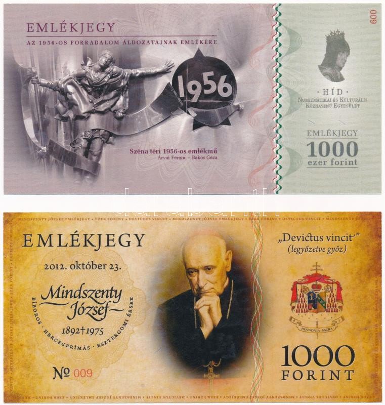 Beschreibung: 2012. 1000Ft "Emlékjegy - Az 1956-os forradalom áldozatainak emlékére - Mansfeld Péter" + 2012. 1000Ft "Mindszenthy József Emlékjegy" T:I