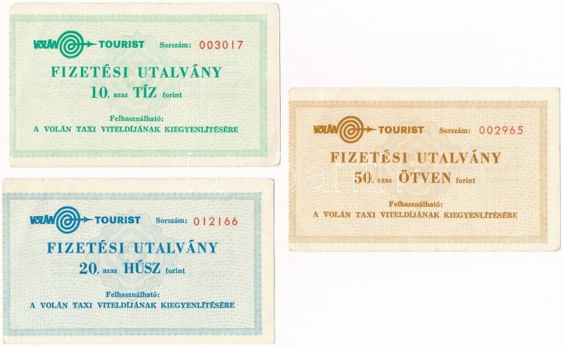 ~1980. "Volán Tourist" 10Ft + 20Ft + 50Ft fizetési utalvány ... https://www.darabanth.com/de/374-Fernauktion/374.0/Numismatik/Notgeld-aus-Papier-und-Metall~1500006/7E1980-Volan-Tourist-10Ft-plus-20Ft-plus-50Ft-fizetesi-utalvany-TI-~II2186171