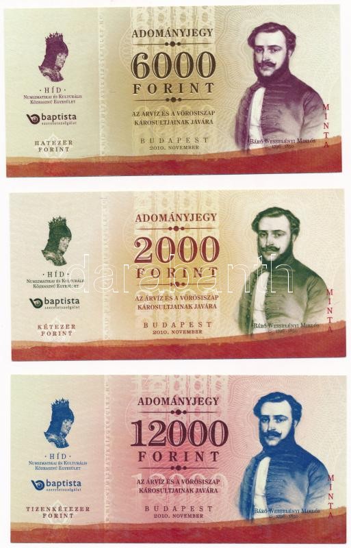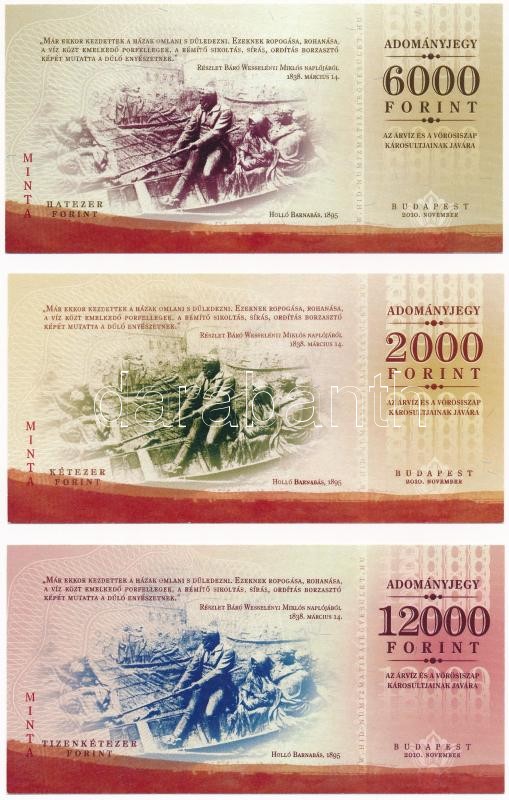 Beschreibung: Budapest 2010. 2000Ft + 6000Ft + 12000Ft "Adományjegy az árvíz és a vörösiszap károsultjainak javára" mindhárom "MINTA" T:I