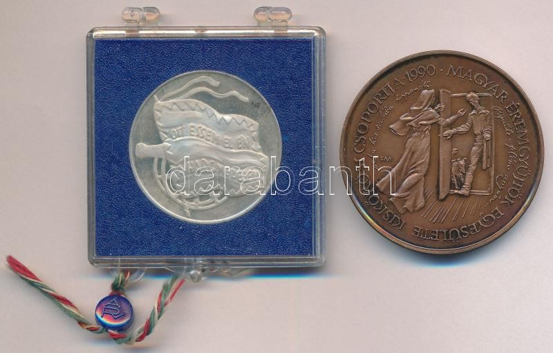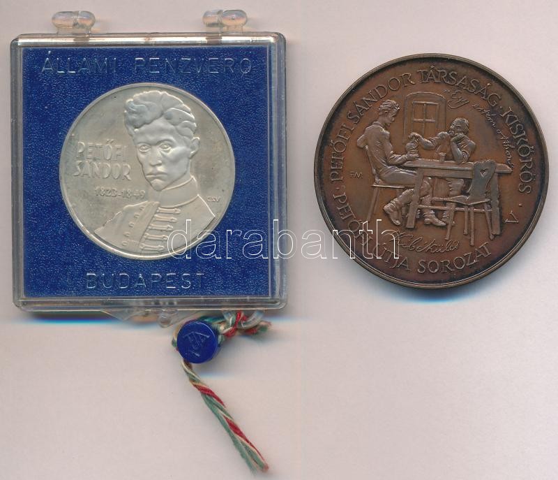 Beschreibung: Fritz Mihály (1947-) 1990. "Petőfi útja sorozat V. / Magyar Éremgyűjtők Egyesülete kiskőrösi csoportja 1990" Br emlékérem (42mm) + "Csúcs Viktória (1934-) DN "Petőfi Sándor" jelzetlen Ag emlékérem eredeti, plombált ÁPV plasztiktokban (~16g/0.925/32mm) T:1,1 (eredetileg PP)