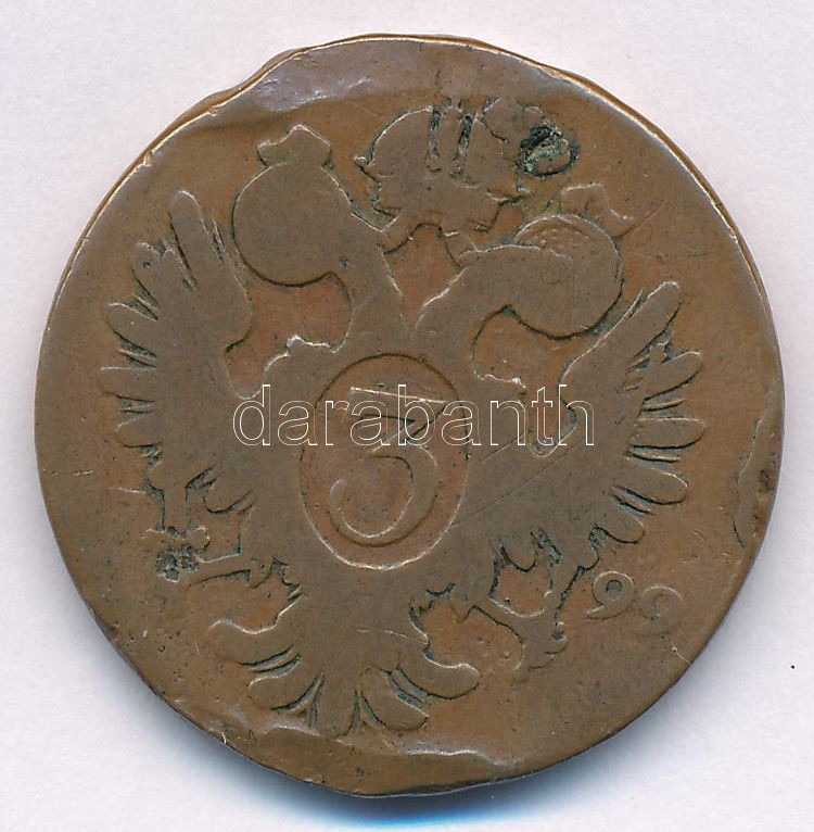 1799C 3kr Cu "I. Ferenc" T:3, patina, ph. Krause KM#2115.1 H... https://www.darabanth.com/de/374-Fernauktion/374.0/Numismatik/Ungarische-Munzen-und-Munzen-mit-ungarischem-Munzzeichen~1500008/1799C-3kr-Cu-I-Ferenc-T3-patina-ph-Krause-KM2321151-Huszar-2022-Unger-III-1400~II2188842