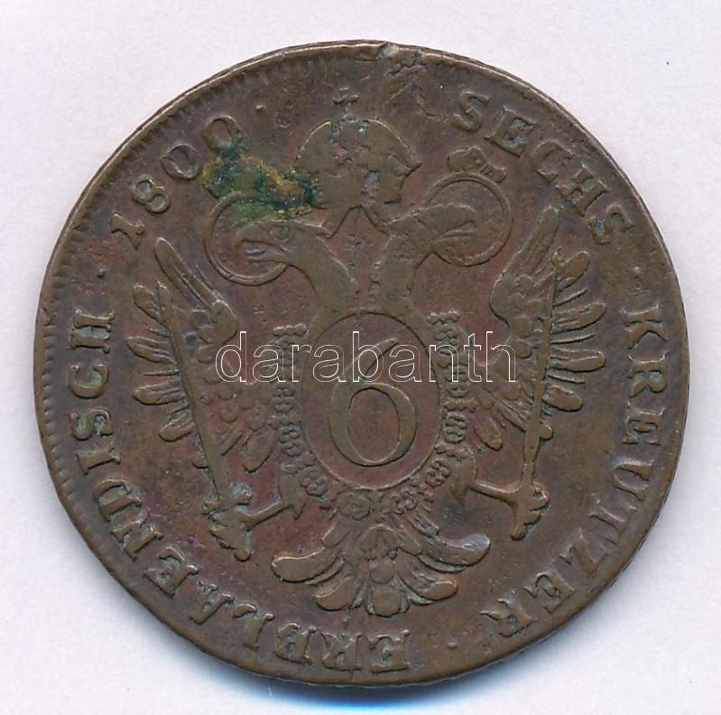 Beschreibung: 1800S 6kr Cu "I. Ferenc" T:2- kis patina Huszár: 2021, Unger III.: 1399.d, Krause KM#2128