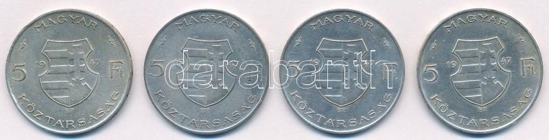 1947. 5Ft Ag "Kossuth" (4x) T:2- Adamo F8.1 https://www.darabanth.com/de/374-Fernauktion/374.0/Numismatik/Ungarische-Munzen-und-Munzen-mit-ungarischem-Munzzeichen~1500008/1947-5Ft-Ag-Kossuth-4x-T2-Adamo-F81~II2188046
