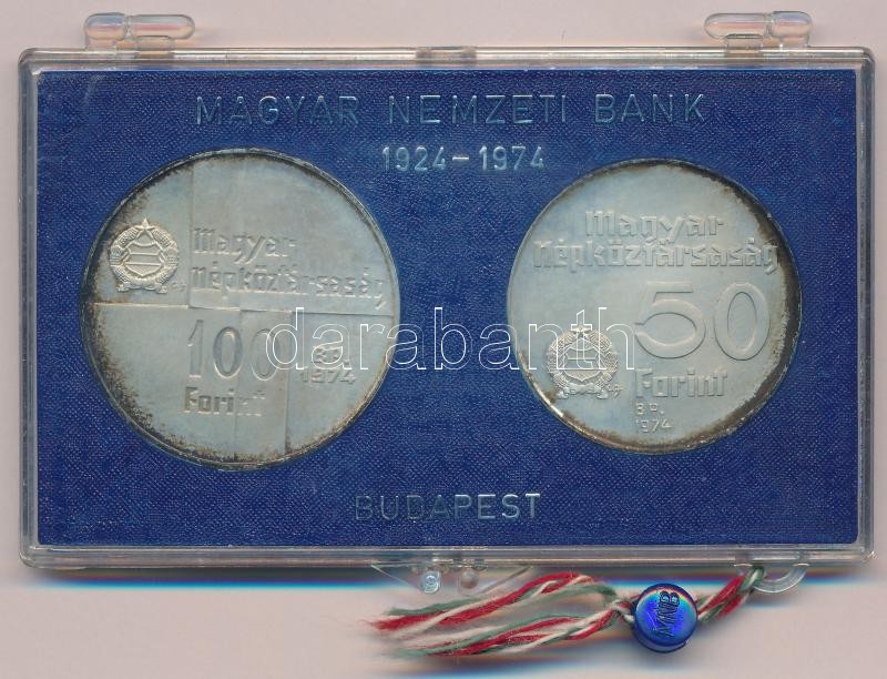 1974. 50Ft Ag "50 éves az MNB" + 100Ft Ag "50 éves az M... https://www.darabanth.com/de/374-Fernauktion/374.0/Numismatik/Ungarische-Munzen-und-Munzen-mit-ungarischem-Munzzeichen~1500008/1974-50Ft-Ag-50-eves-az-MNB-plus-100Ft-Ag-50-eves-az-MNB-plasztik-tokban-TBU-patina-Adamo-EM44~II2188393