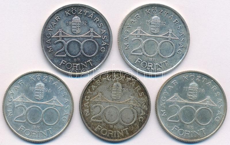 Beschreibung: 1992. 200Ft Ag "MNB" (2x) + 1994. 200Ft Ag "Deák" (3x) T:1-,2 patina