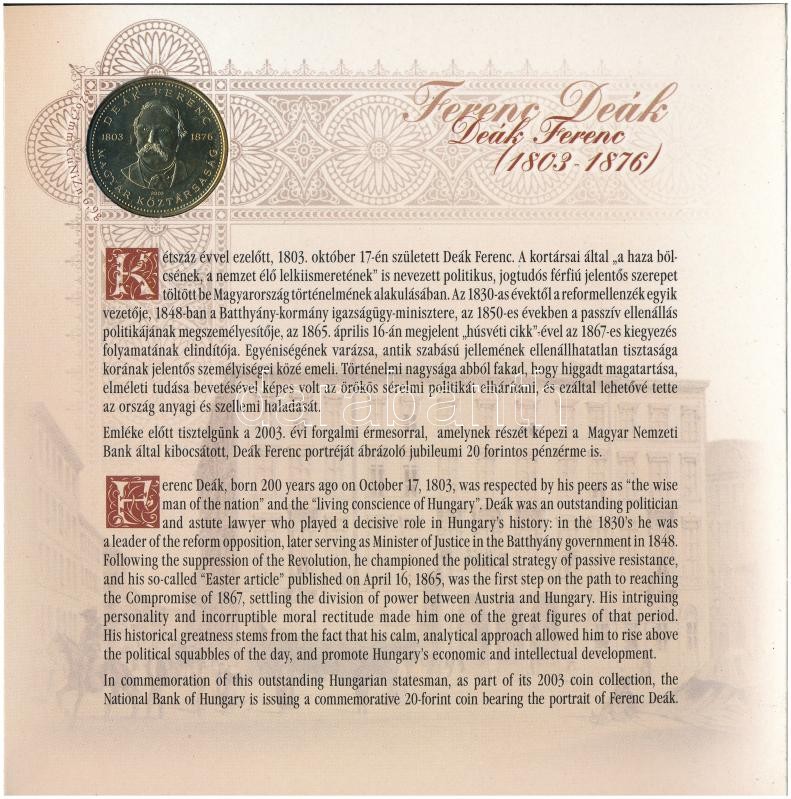 Beschreibung: 2003. 1Ft-100Ft (7xklf) forgalmi sor szettben + 20Ft "Deák Ferenc" forgalmi emlékérme T:BU Adamo FO36
