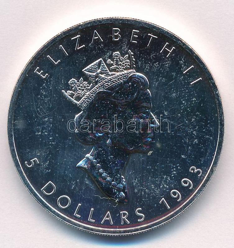 Canada 1993. 5 Dollars Ag "Elizabeth II / Maple Leaf" (1oz/0.999) C:BU slightly scratched