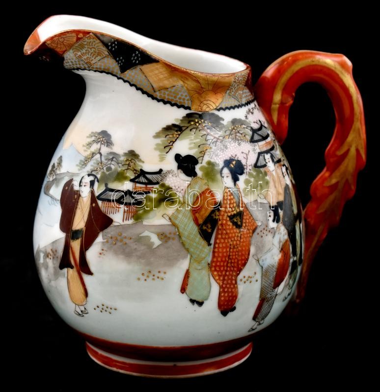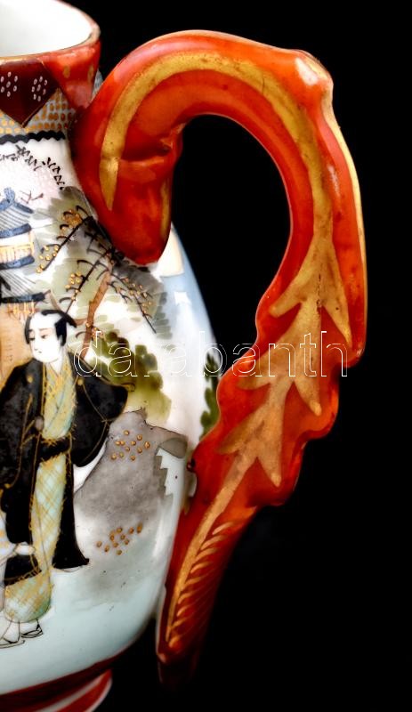 Beschreibung: Japán porcelán kiöntő, kézzel festett, aranyozott, jelzett, apró kopásokkal, lepattanással m: 12 cm