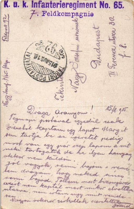 Beschreibung: 1915 Frühlingsbotschaft / WWI K.u.K. (Austro-Hungarian) military art postcard. B.K.W.I. 4699-4. s: K. Feiertag + "K.u.K. Infanterieregiment No. 65. 7. Feldkompagnie"