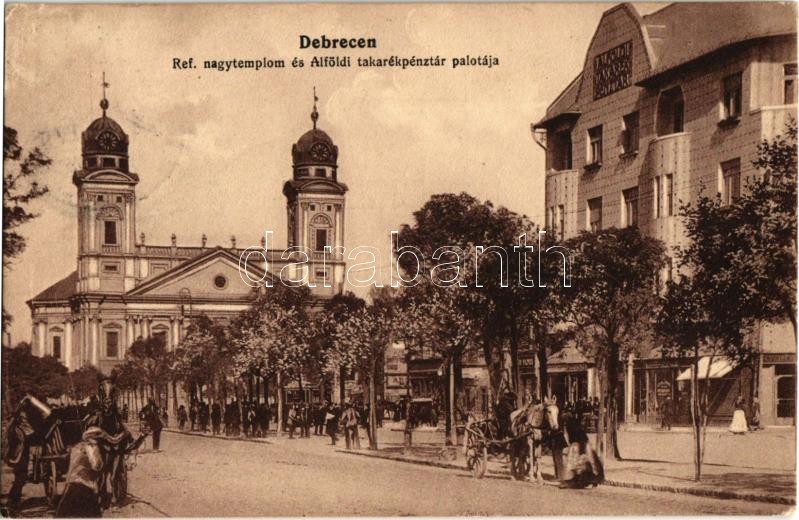 1913 Debrecen, Református Nagytemplom és Alföldi Takarékpénztár palota... https://www.darabanth.com/de/375-Fernauktion/375.0/Ansichtskarten/Ungarn~1500005/1913-Debrecen-Reformatus-Nagytemplom-es-Alfoldi-Takarekpenztar-palota-uzletek~II1965304