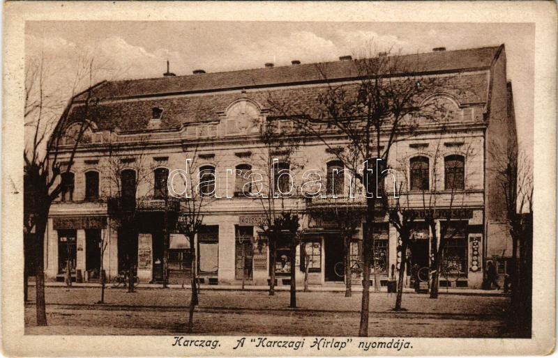 Beschreibung: 1930 Karcag, A Karcagi Hírlap nyomdája, Grosz József üzlete. Ifj. Klein Mór kiadása (EK)