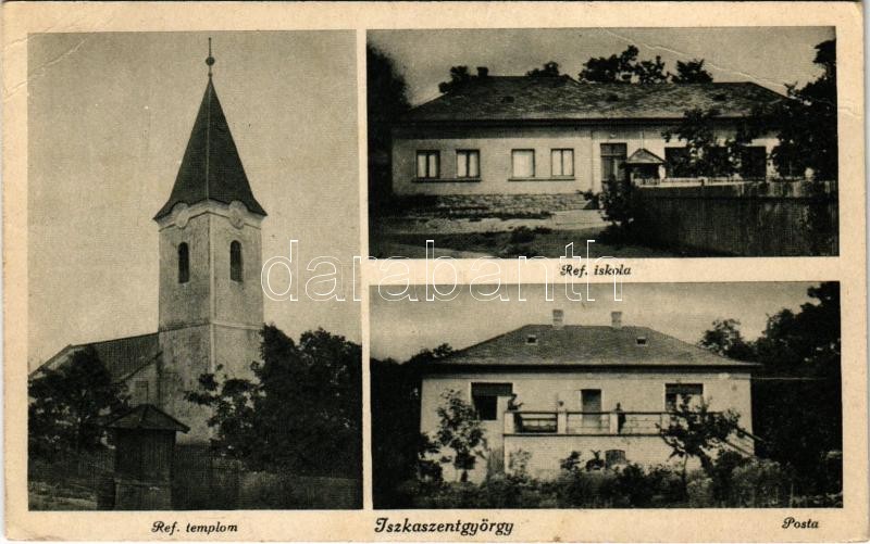 Beschreibung: 1943 Iszkaszentgyörgy, Református templom és iskola, Posta (EB)