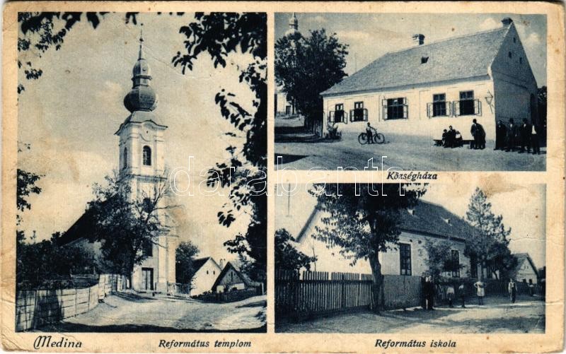 1948 Medina, Református templom és iskola, Községháza, kerékpár. Hangy... https://www.darabanth.com/de/375-Fernauktion/375.0/Ansichtskarten/Ungarn~1500005/1948-Medina-Reformatus-templom-es-iskola-Kozseghaza-kerekpar-Hangya-Szovetkezet-kiadasa~II2193275